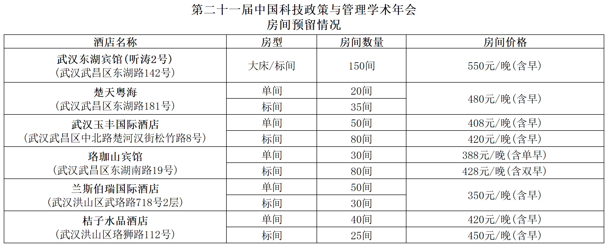 注:参会代表需通过会议网站预订住宿,享受协议价。房间数量有限,为保证您的顺利参会,请尽早预订。
